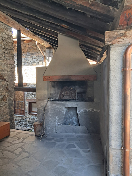 Modern reinforced cement oven, rebuilt during the renovation of thevillage. Covered and outdoor, it is lit a few times a year. Today, as in the past, this task is entrusted to themen of the village.